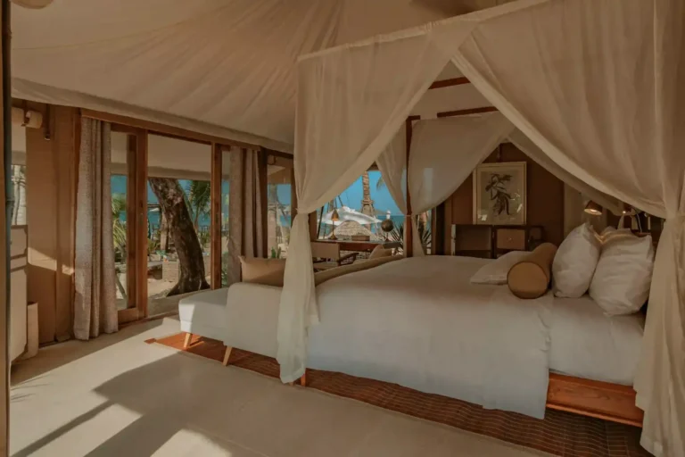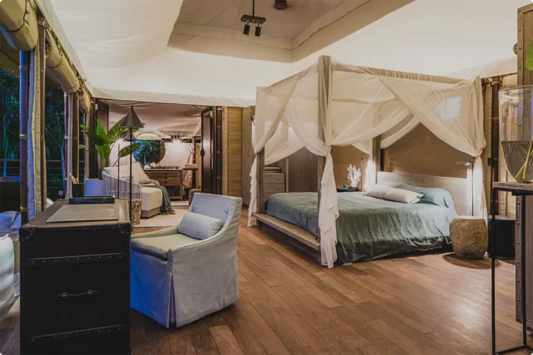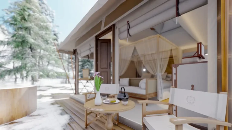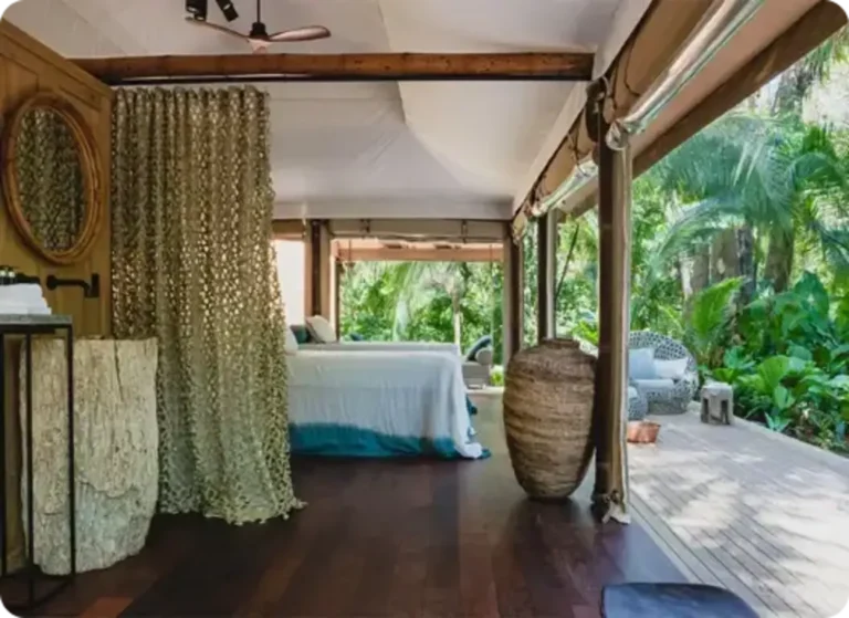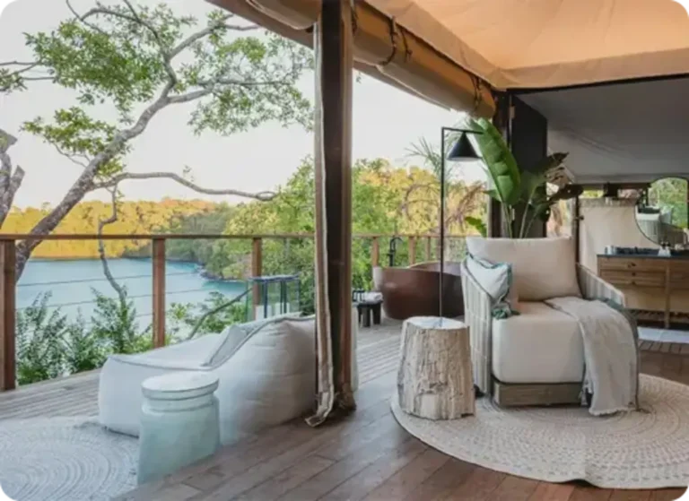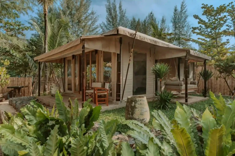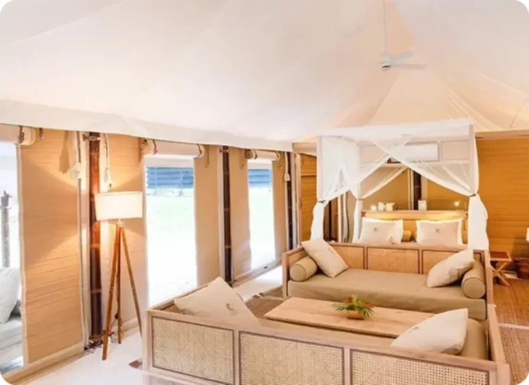 In Thailand, Aladdin Luxury Camp allows guests to enjoy sunset views and modern comfort in a unique setting. Meanwhile, the Twinpalms Bangtao Tented Resort is a tented hideaway nestled directly on the white sandy beach or just a short stroll away amidst lush tropical gardens. The Tambu Restaurant, offering exquisite Indian cuisine, uses our tents to elevate the outdoor dining experience, providing a unique setting that enhances the beauty of Southeast Asia.